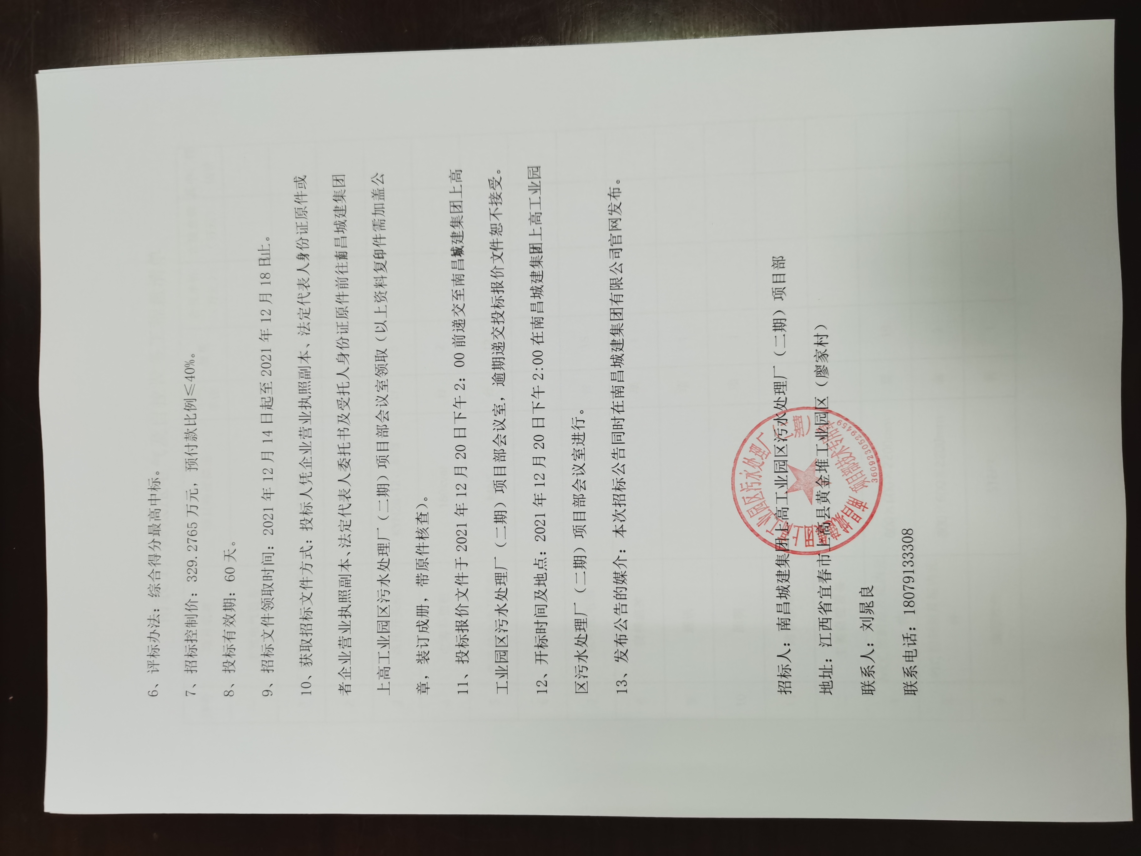 11、投标报价文件于2021年12月20日下午2:00前递交至ok138cn太阳集团集团上高工业园区污水处理厂(二期)项目部会议室,逾期递交投标报价文件恕不接受。