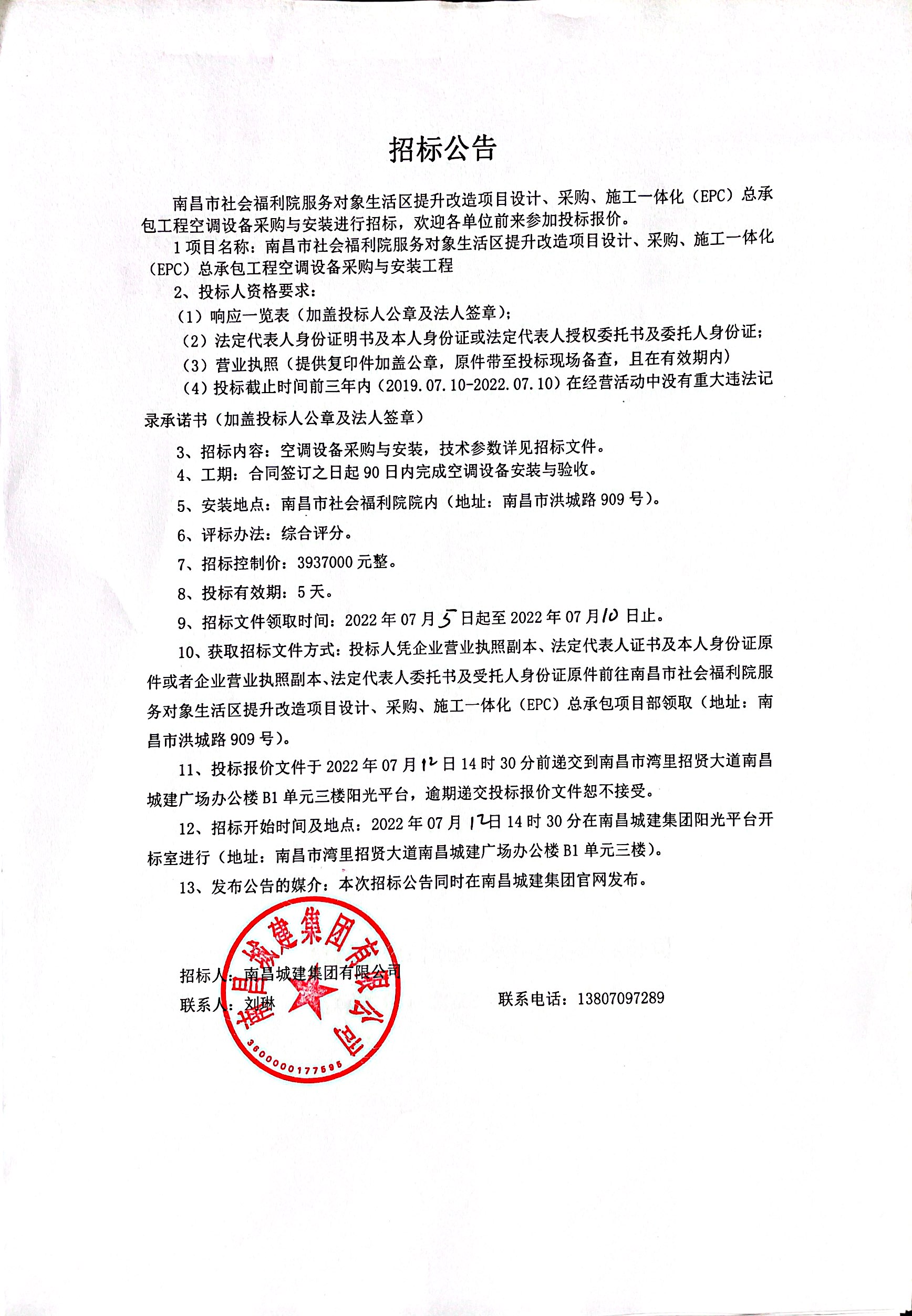 南昌市社会福利院服务对象生活区提升改造项目设计、采购、施工一体化(EPC)总承包工程空调设备采购与安装进行招标,欢迎各单位前来参加投标报价。