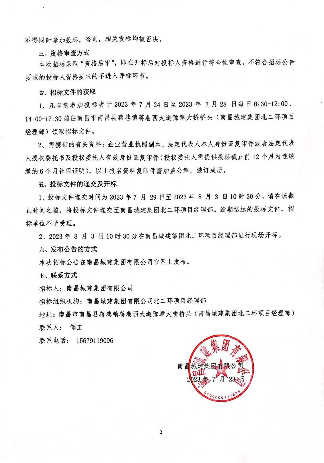 1、凡有意参加投标者于2023年7月24日至2023年 7月28 日每日8:30-12:00、14:00-17:30前往南昌市南昌县蒋巷镇蒋巷西大道豫章大桥桥头(ok138cn太阳集团集团北二环项目经理部)领取招标文件。