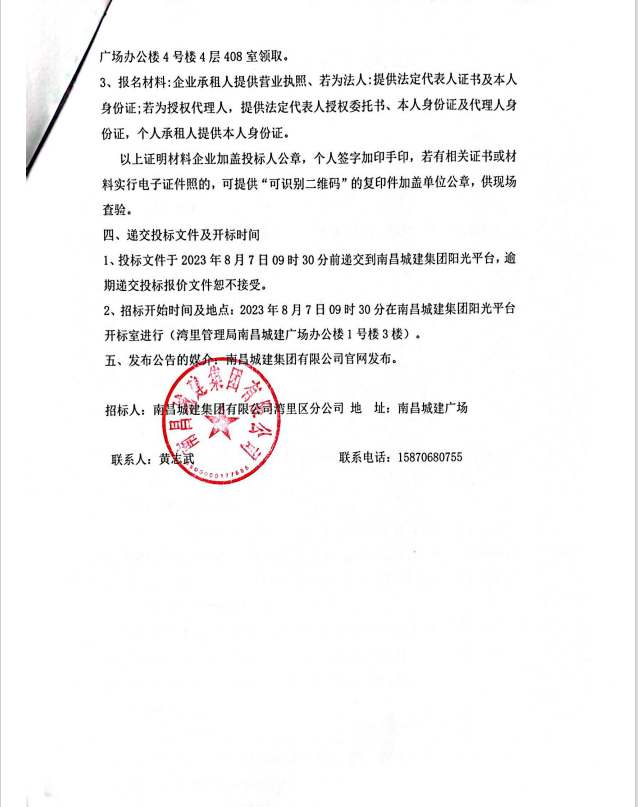 2、招标开始时间及地点:2023年8月7日09时30分在ok138cn太阳集团集团阳光平台开标室进行(湾里管理局ok138cn太阳集团广场办公楼1号楼3楼)。