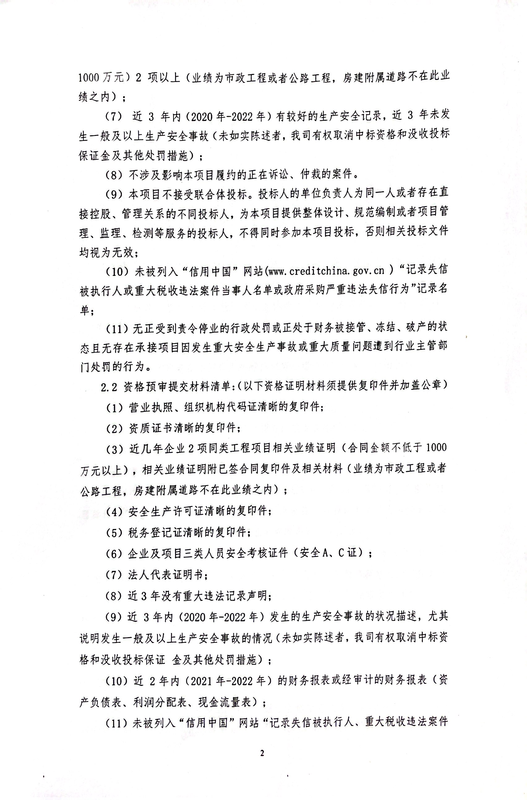 2.2 资格预审提交材料清单:(以下资格证明材料须提供复印件并加盖公章)