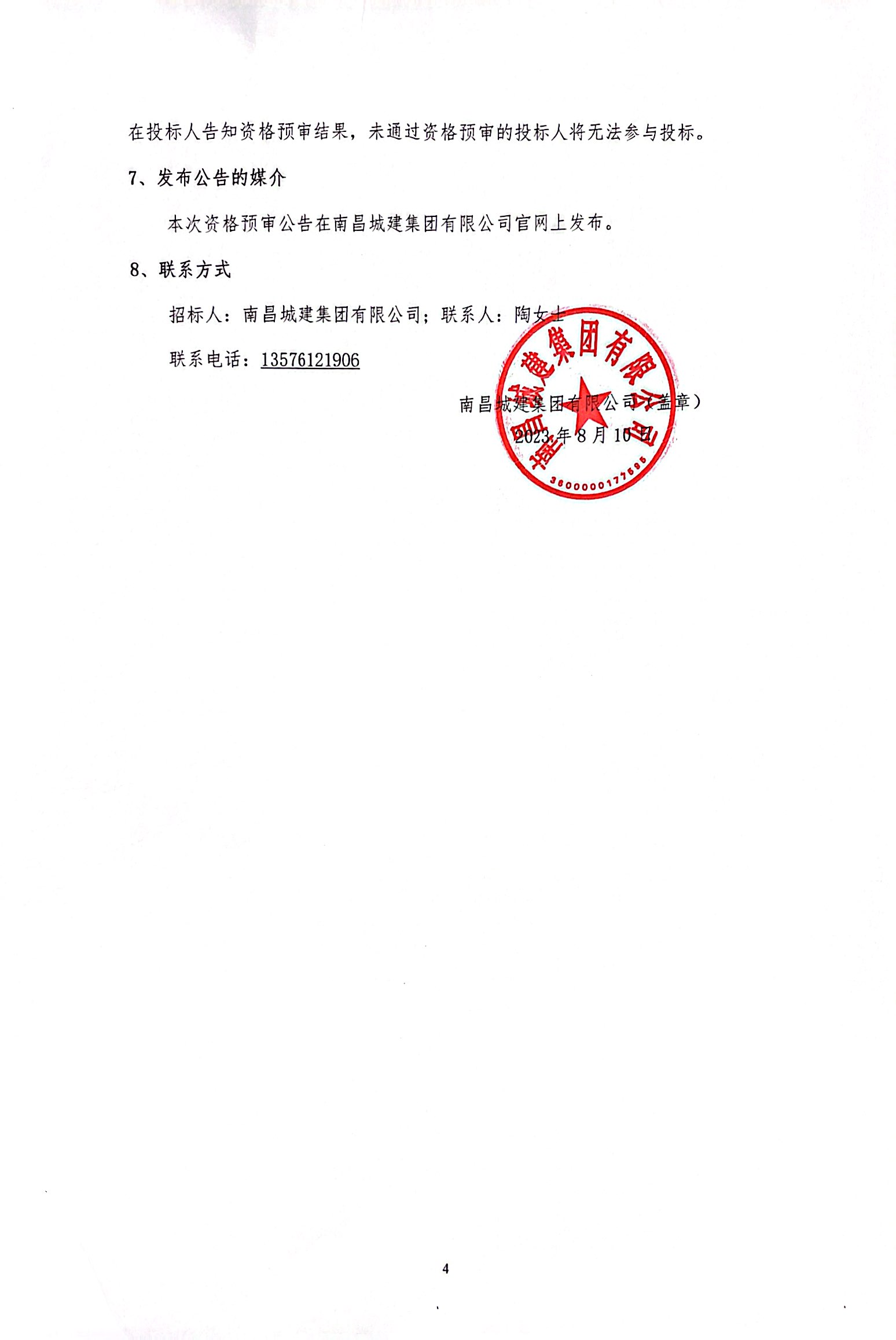 5.2资格预审文件递交的时间为:2023年8月16日至2023年8月20日每日8:30-12:00、14:00-17:30。递交地点南昌市南昌县蒋巷镇蒋巷西大道豫章大桥桥头(ok138cn太阳集团集团北二环项目经理部),逾期未将资格预审文件递交的,招标人将不予受理。