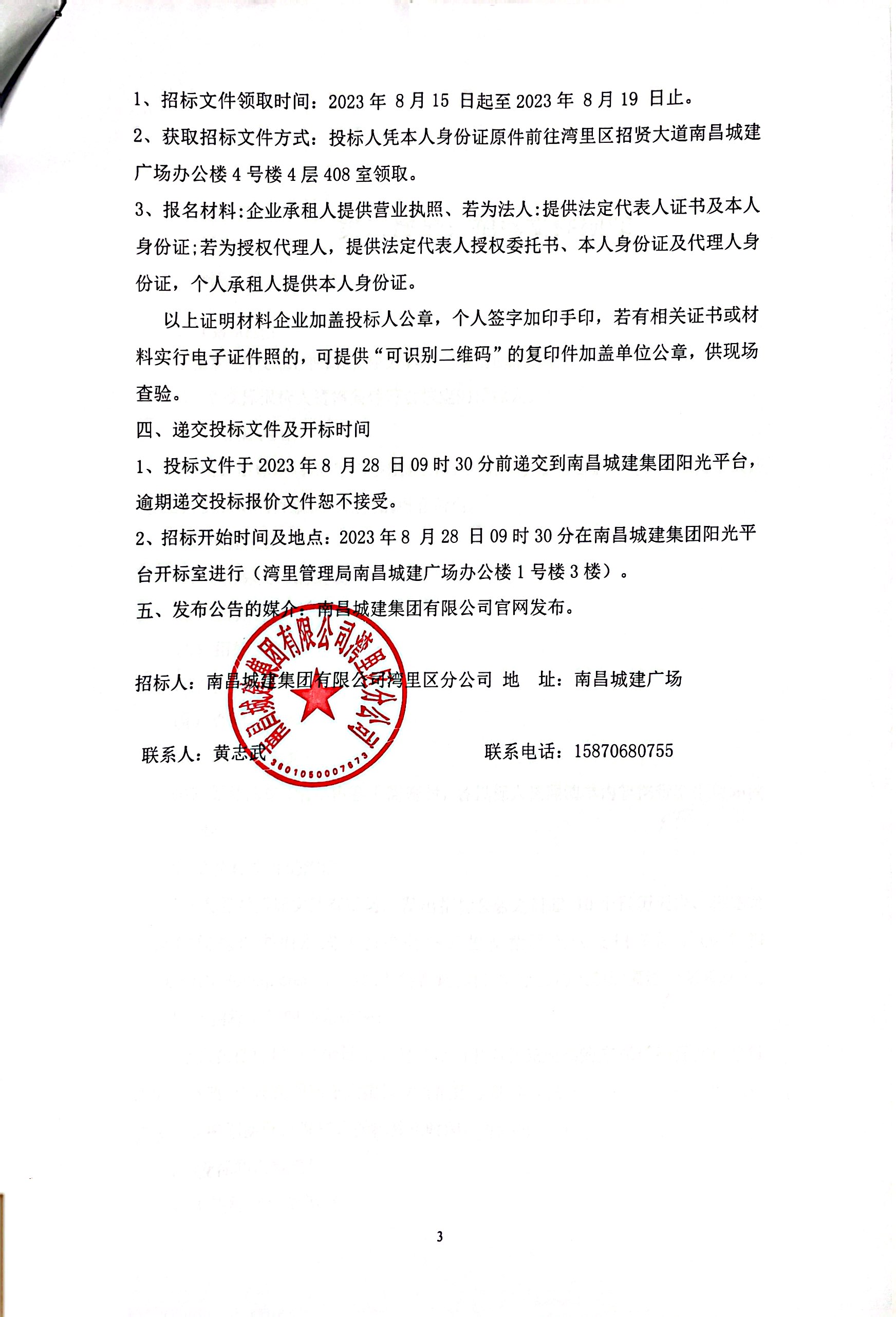 2、招标开始时间及地点:2023年8 月28 日09时30分在ok138cn太阳集团集团阳光平台开标室进行(湾里管理局ok138cn太阳集团广场办公楼1号楼3楼)。
