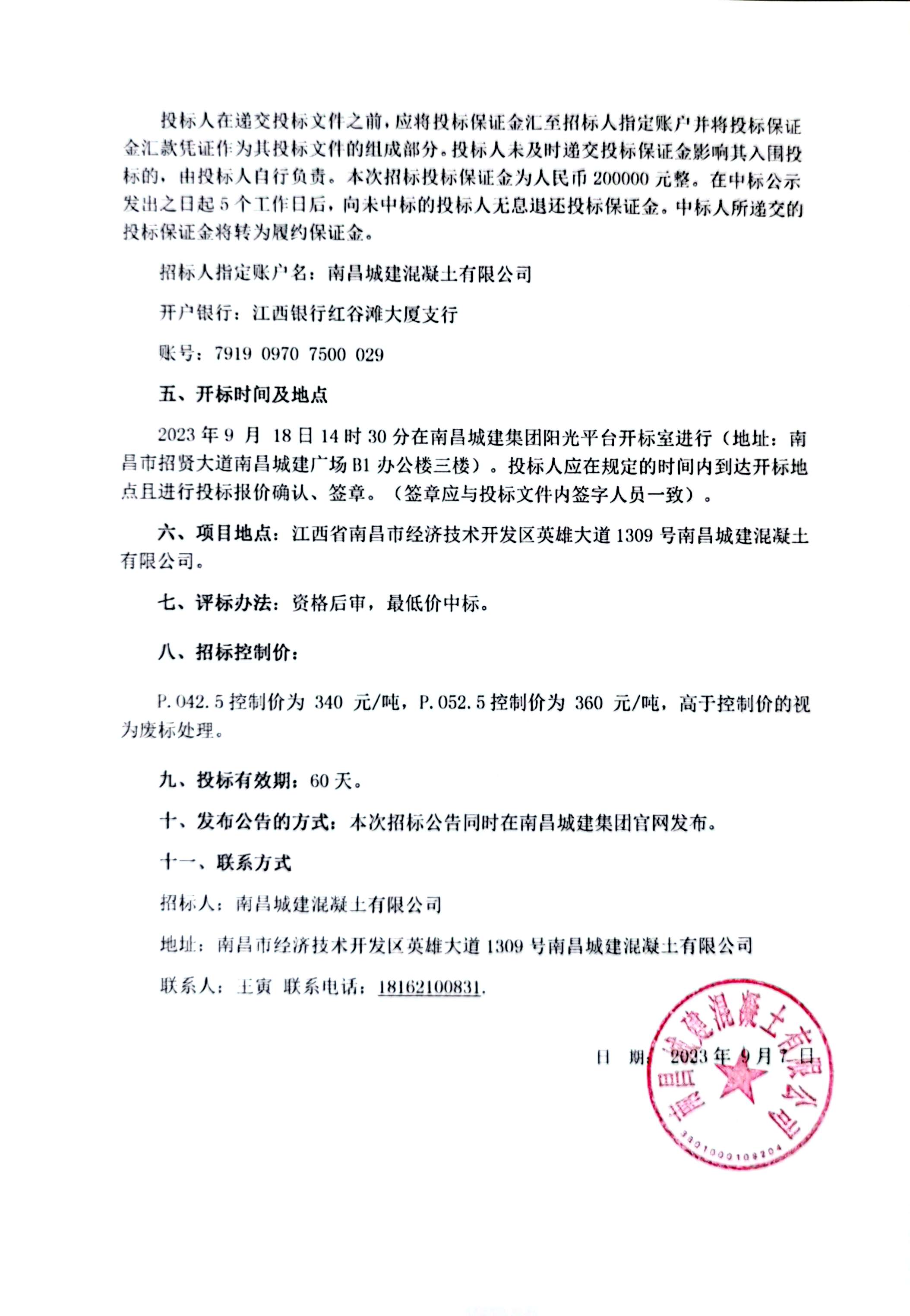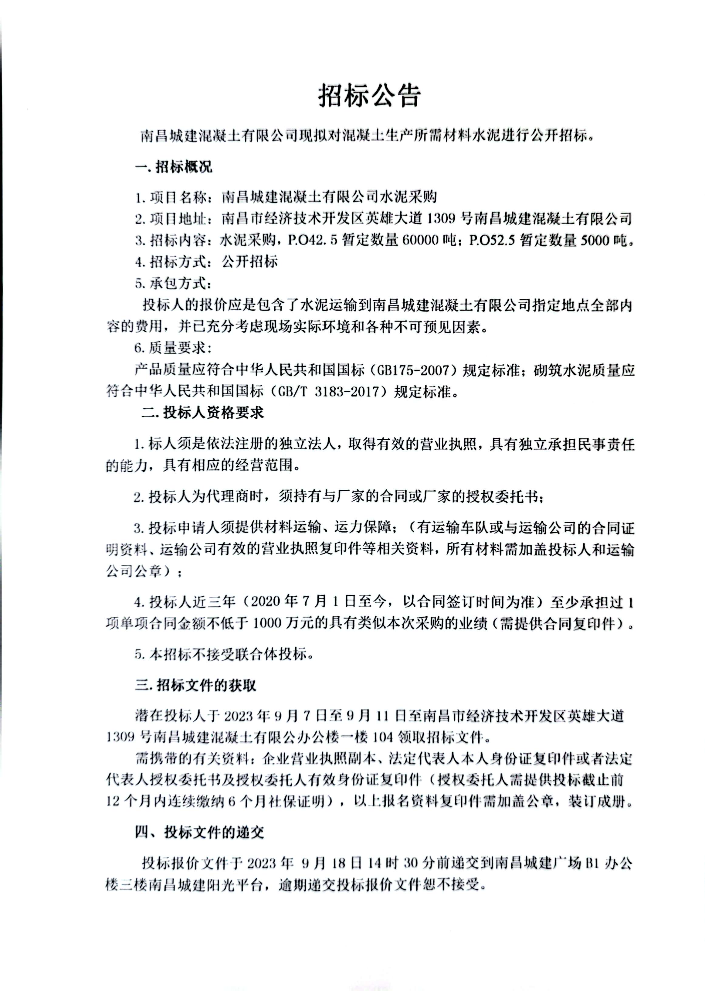 ok138cn太阳集团混凝土有限公司现拟对混凝土生产所需材料水泥进行公开招标。