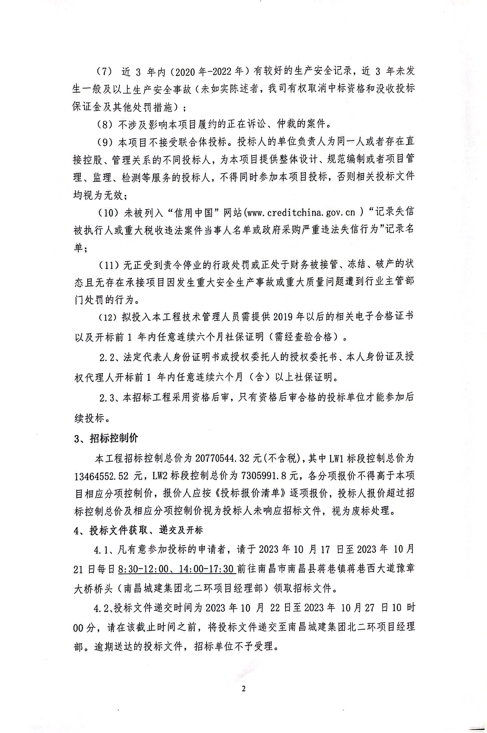 4.1、凡有意参加投标的申请者,请于2023年10 月17 日至2023年 10月 21日每日8:30-12:00、14:00-17:30前往南昌市南昌县蒋巷镇蒋巷西大道豫章大桥桥头(ok138cn太阳集团集团北二环项目经理部)领取招标文件。