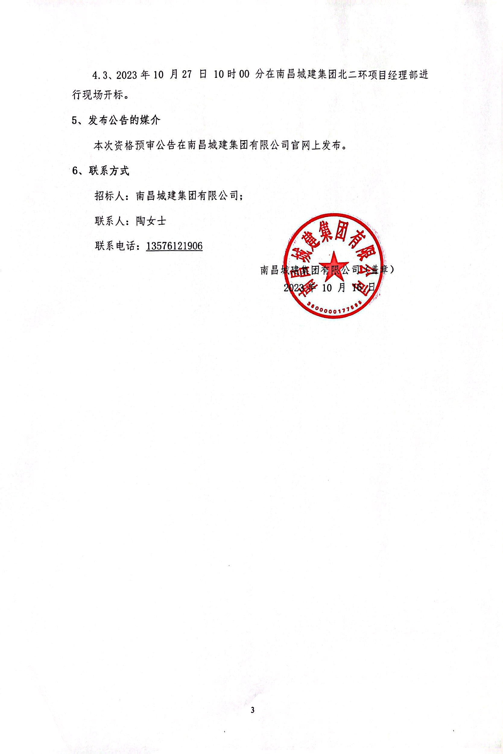 4.3、2023年10 月27 日 10时00 分在ok138cn太阳集团集团北二环项目经理部进行现场开标。