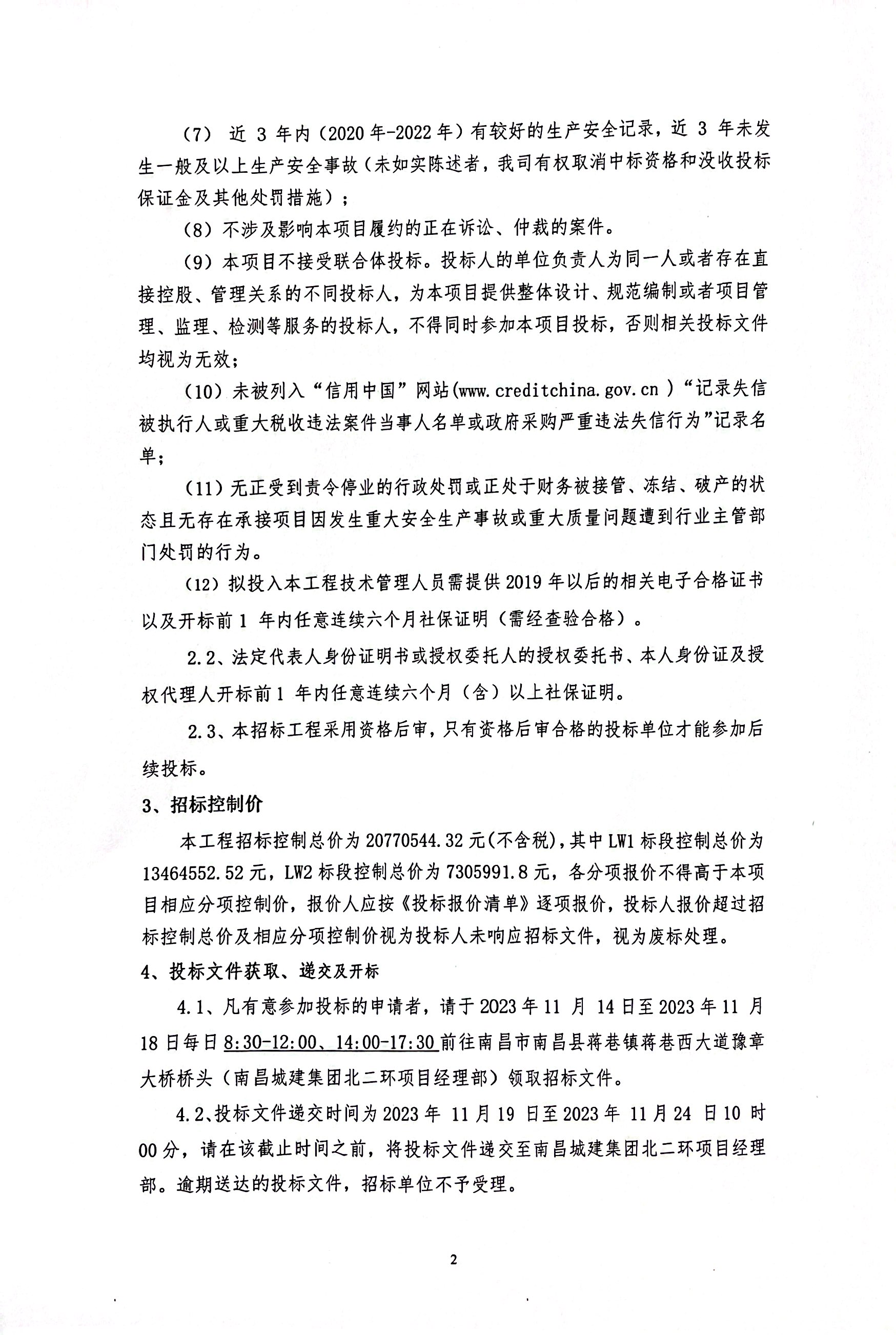 4.1、凡有意参加投标的申请者,请于2023年11 月 14日至2023年11 月 18日每日8:30-12:00、14:00-17:30前往南昌市南昌县蒋巷镇蒋巷西大道豫章大桥桥头(ok138cn太阳集团集团北二环项目经理部)领取招标文件。