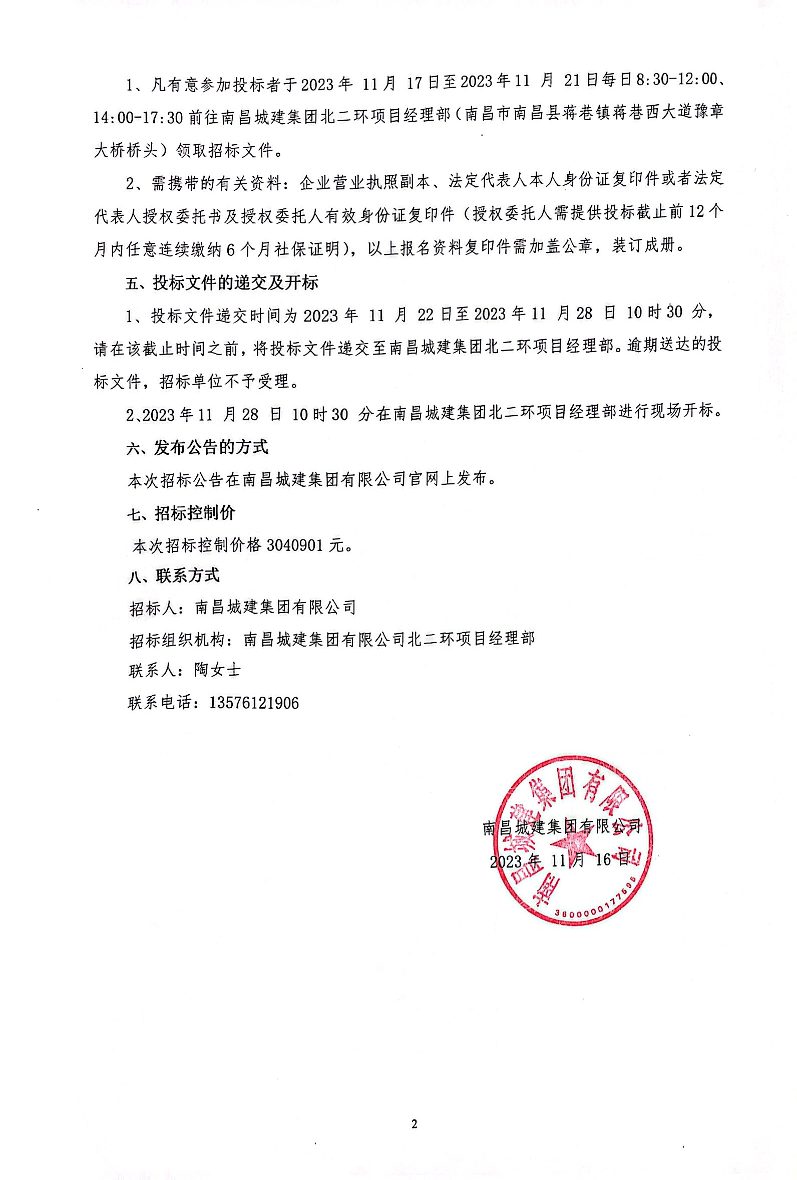 1、凡有意参加投标者于2023年 11月 17日至2023年11 月 21日每日8:30-12:00、14:00-17:30前往ok138cn太阳集团集团北二环项目经理部(南昌市南昌县蒋巷镇蒋巷西大道豫章大桥桥头)领取招标文件。