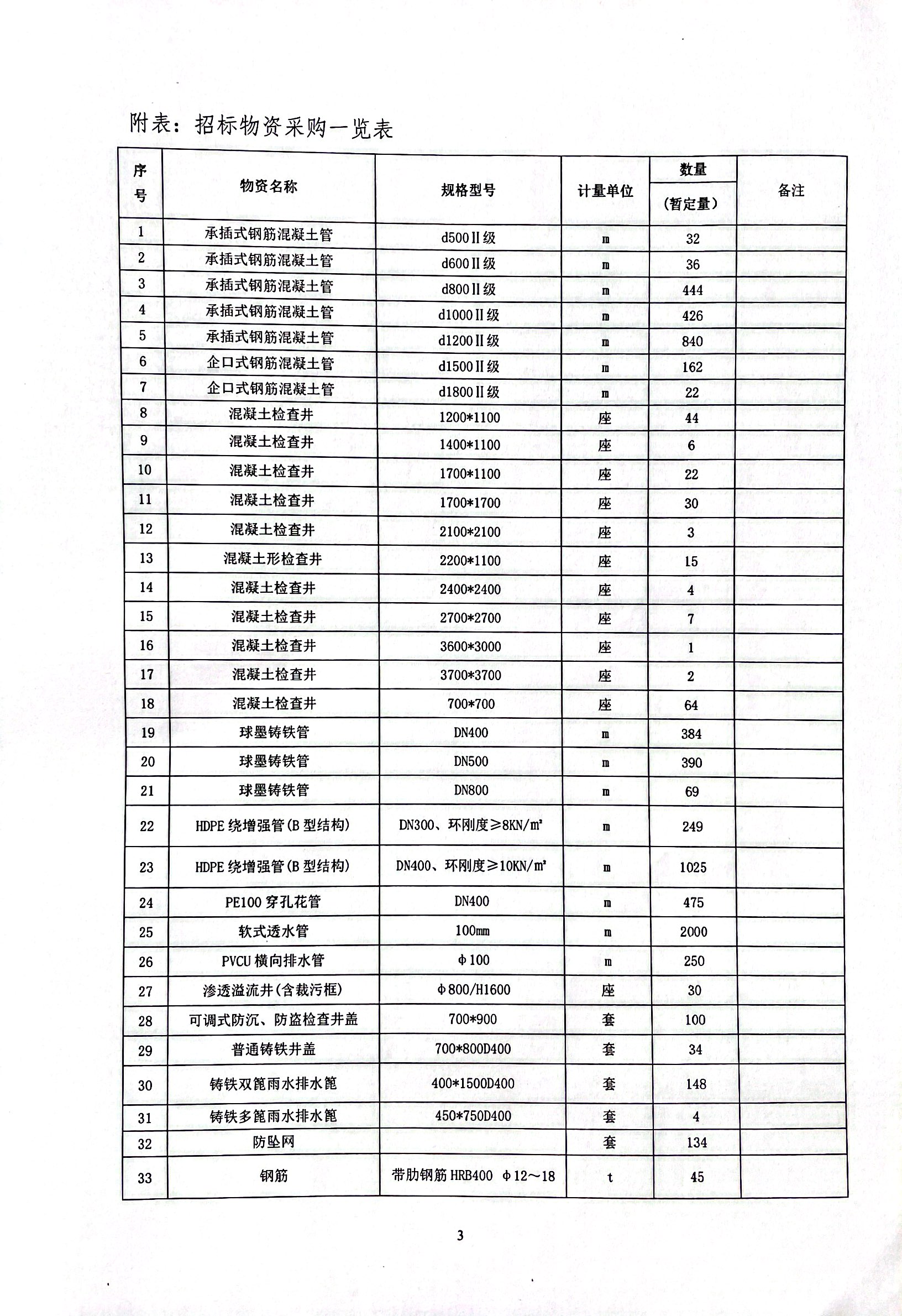 2、招标内容:本次招标内容为管井采购(具体详见附表1:招标物资采购计划表);