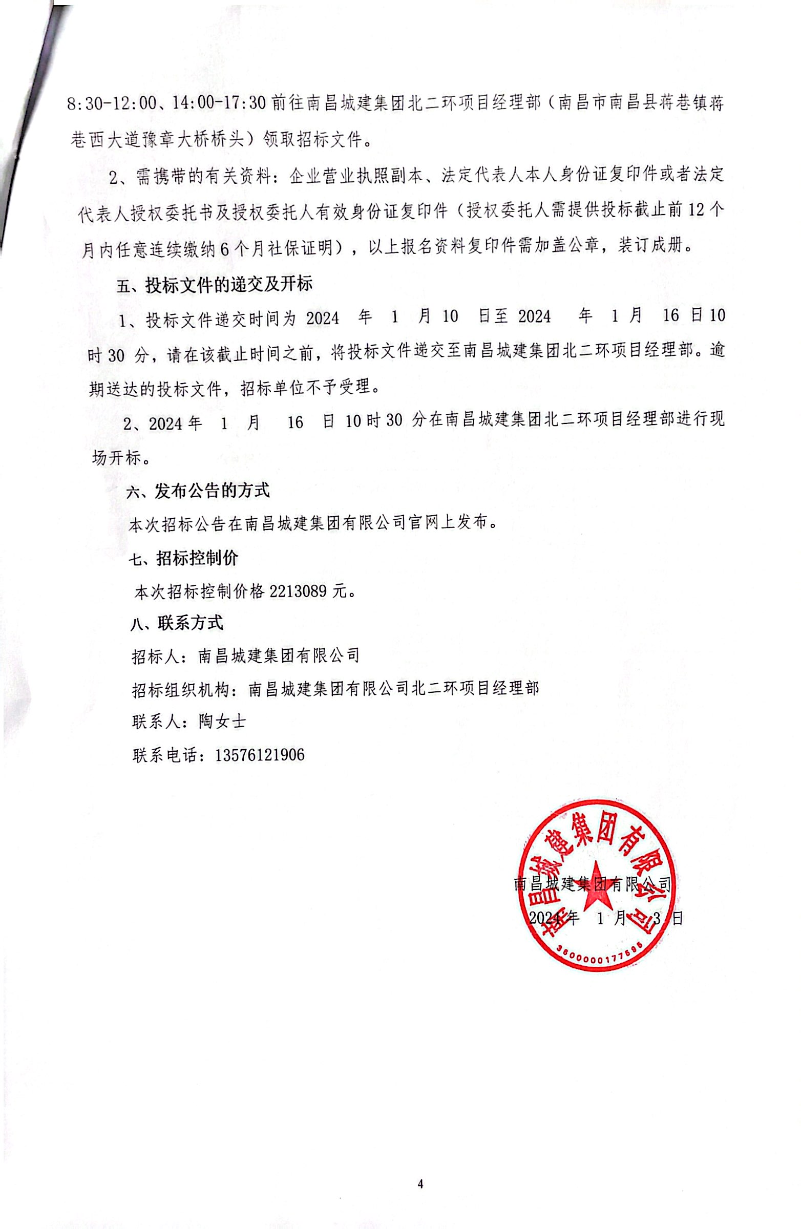 1、凡有意参加投标者于2024 年 1 月 4 日至 2024 年 1 月 9日每日8:30-12:00、14:00-17:30前往ok138cn太阳集团集团北二环项目经理部(南昌市南昌县蒋巷镇蒋巷西大道豫章大桥桥头)领取招标文件。