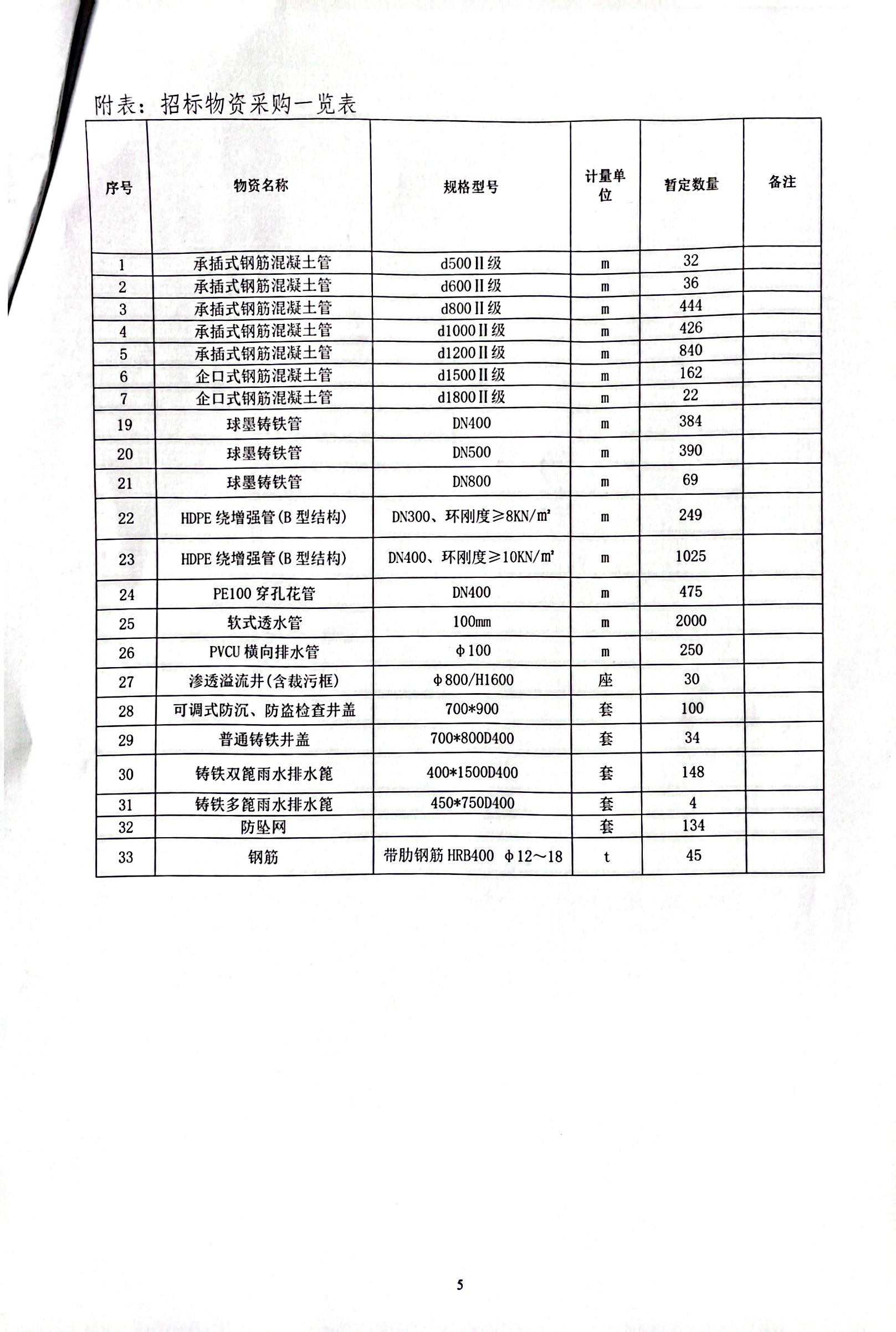 2、招标内容:本次招标内容为管道采购(具体详见附表1:招标物资采购计划表);