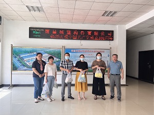 7月21日,集团公司工会一行三人向工业化公司、公路公司、混凝土公司、构件公司送去了人丹、十滴水、藿香正气滴丸、风油精、清凉油等药品和绿豆冰糖等防暑降温物品。送去了集团领导的关怀和工会组织的问候。